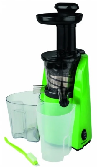The device has an original design. Green plastic body. Mechanical control. The legs are rubberized and adhere well to the surface of the table. From the systems there is a direct supply of juice and a "drop-stop". The presence of a gentle mode prevents the oxidation of products. This model works at low speeds and retains useful microelements up to 85%.