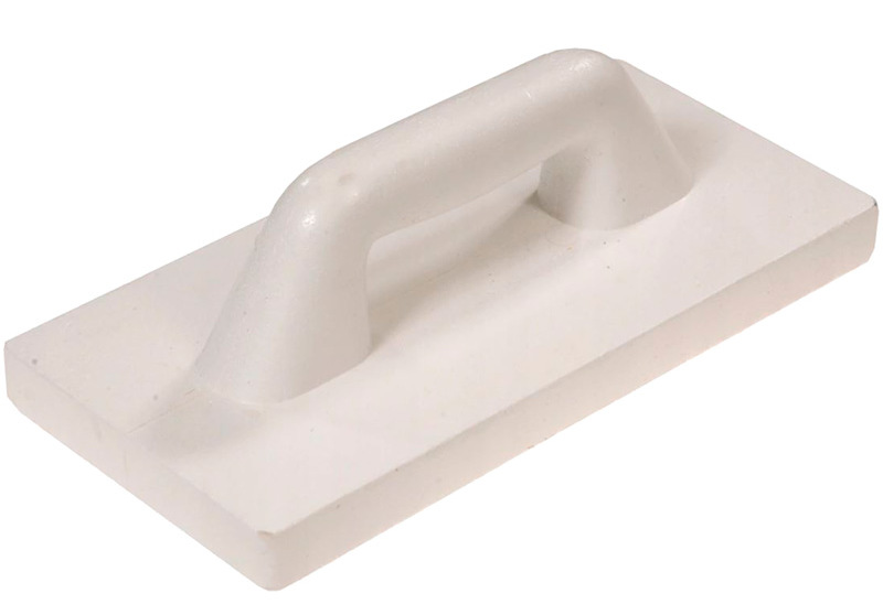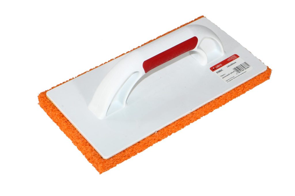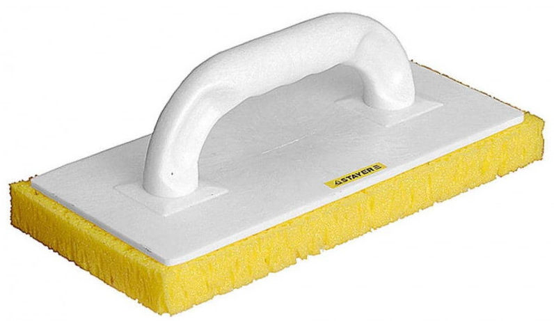 Rigid foam rubber sponge 25 mm thick grinds plastered and putty surfaces, used for grouting. The tool remains in working condition for a long time, having high resistance to abrasion.