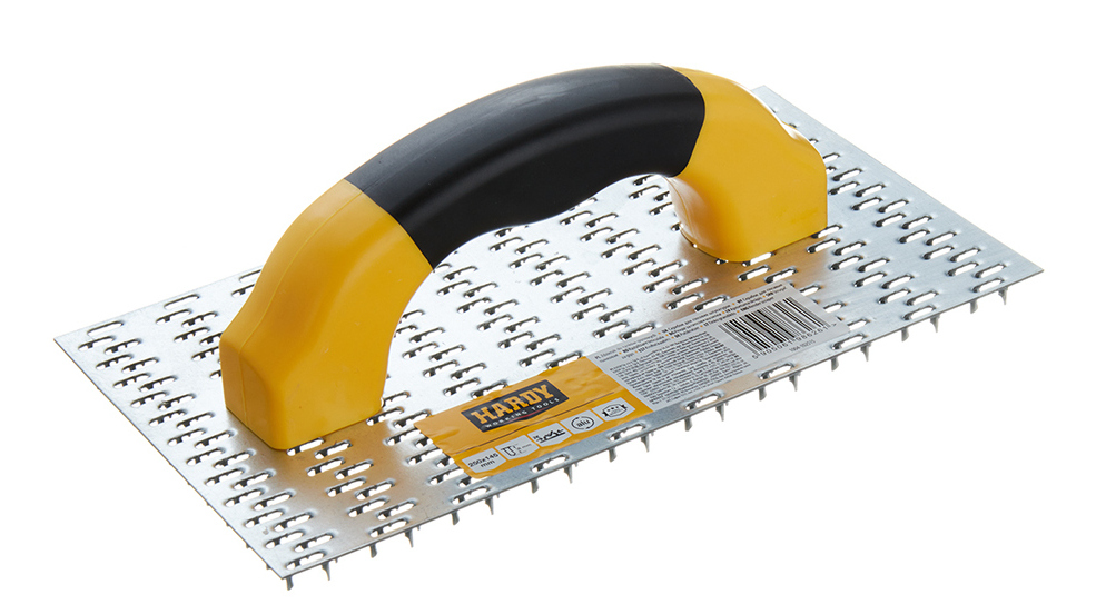European-made Hammer 601-059 plastic model with a porous structure and a hard fiber directed perpendicular to the surface to be treated, does an excellent job of sanding dry plaster and polystyrene. Clamps on the end edges of the upper part of the body expand the range of work performed by it. You can install a sanding belt and an abrasive mesh on the grater.