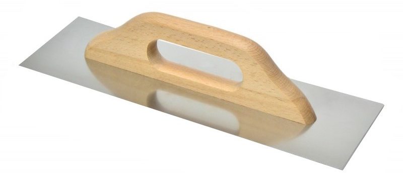 A plaster trowel with a massive wooden handle and a metal base is designed for application and preliminary leveling - it is used as a trowel. The device can be used for grouting dried gypsum mixtures and grinding wet gypsum-based compositions. The sharp, hard edges of the metal base easily cut off the bumps of the fresh composition, leaving behind a perfectly smooth surface.