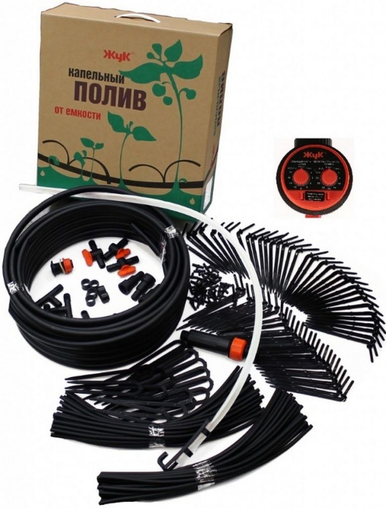 Drip irrigation is very easy to install using special plastic connectors - fittings. In the autumn, they can be dismantled and cleaned up until the next summer season. In horticulture, two types of drip irrigation devices are distinguished - through drip lines and based on a drip tape.