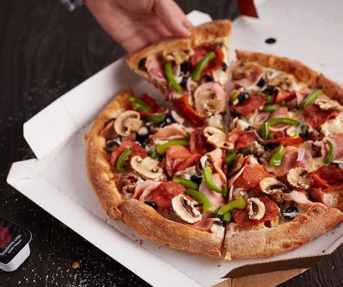 The pizzeria chain offers a choice of 25 types of pizzas, more than 15 types of snacks, 6 desserts and drinks.