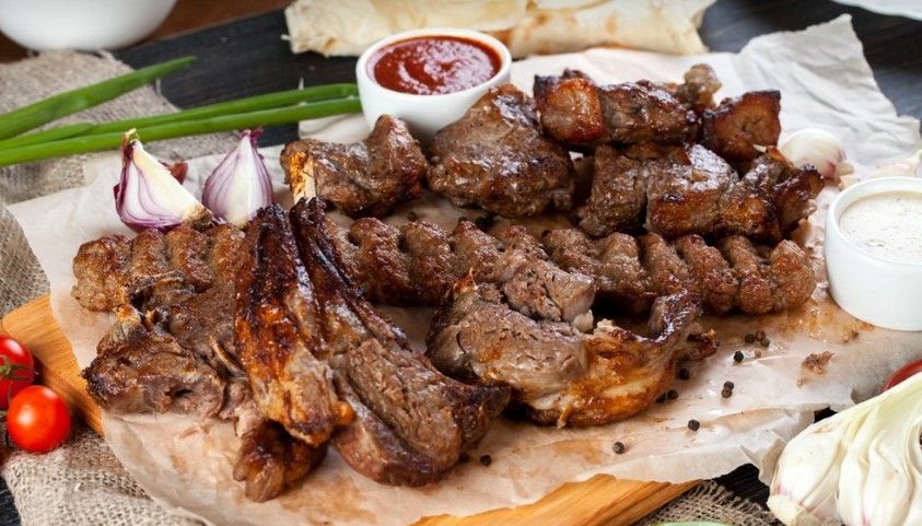 The shish kebab offers visitors and customers food with delivery 8 types of fried meat, 8 types of marinated meat for further cooking at home, as well as shawarma, vegetable cuts, several types of sauces, self-made fruit drinks.
