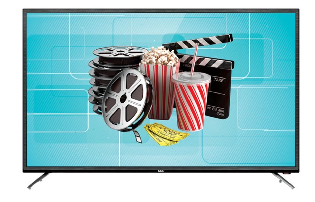 Model 5056 is available in 32, 40, 43 and 50 inches. There is a backlight on the sides, which makes the TV visible in the dark. The audio system is connected via mini-jacks.