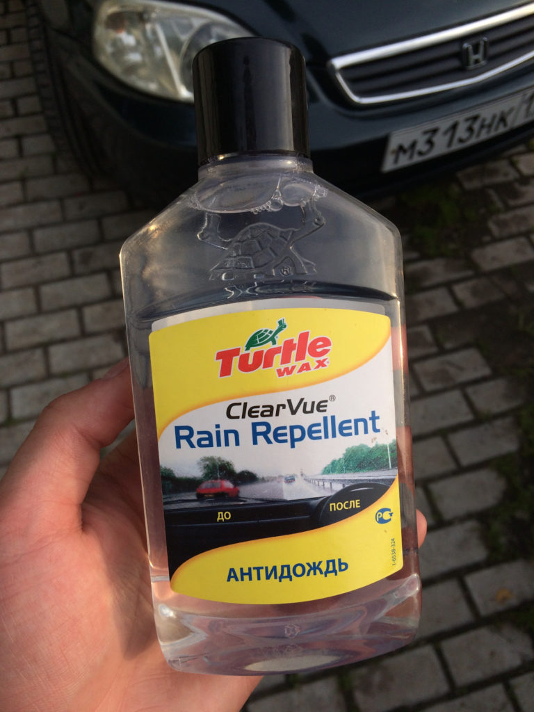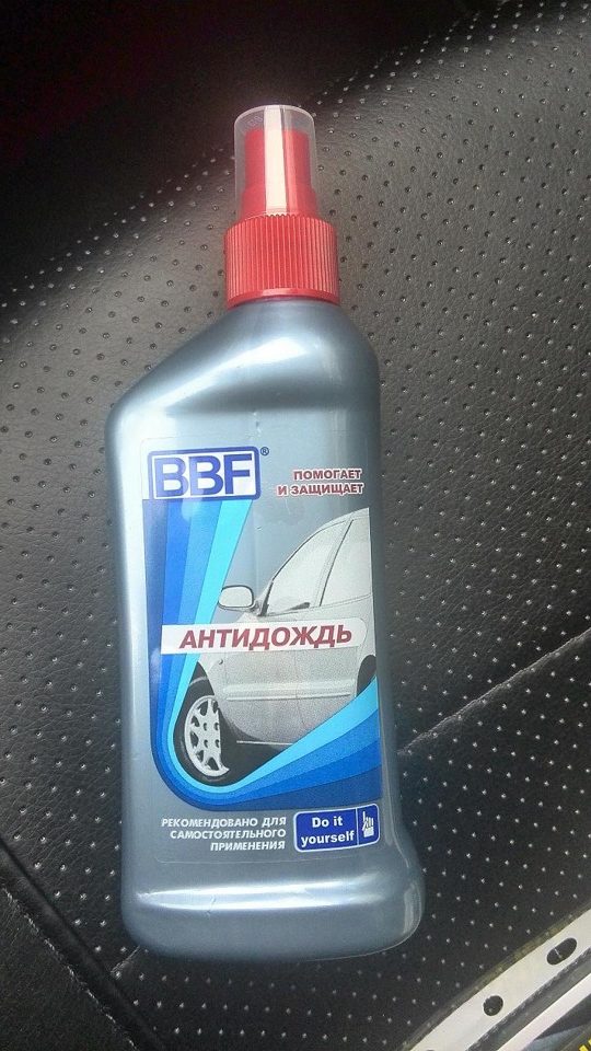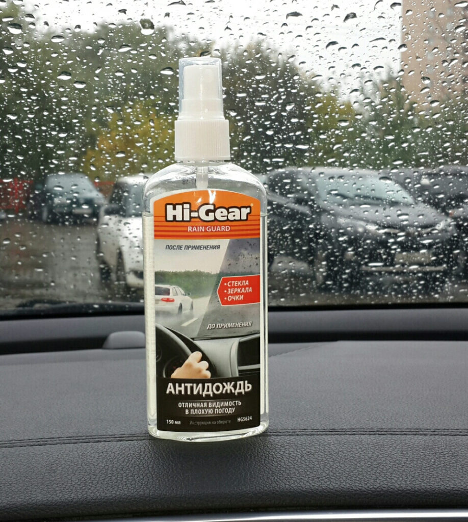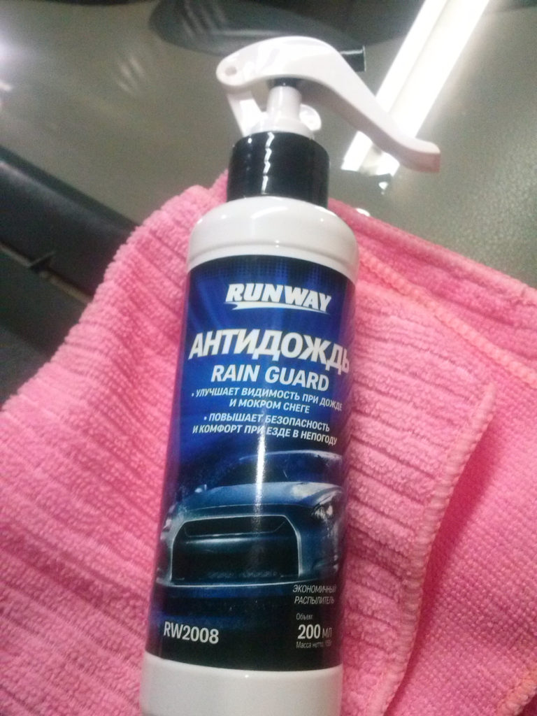 Under this brand, a large number of automotive cosmetics are produced, including anti-rain. In addition to the direct removal of liquid from glass, the product is used to remove traces of insects, as well as from frost and snow sticking.