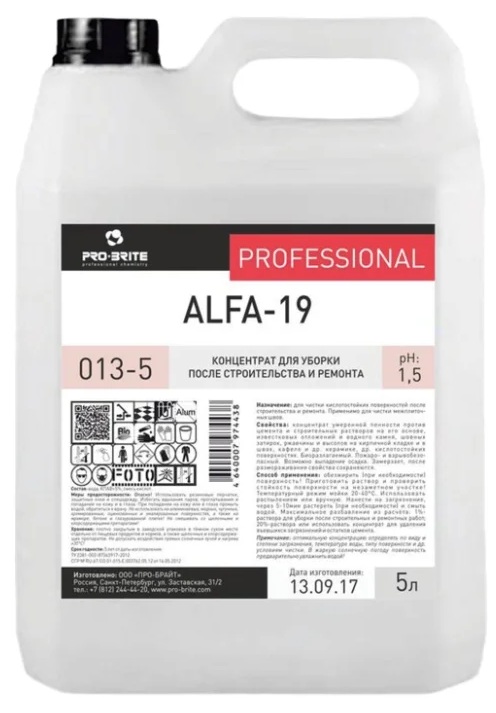 "Alfa-19" from the manufacturer "Pro-Brite", the appearance of the container