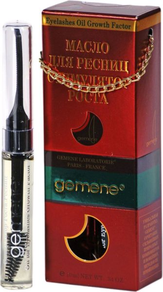 Oil for eyelashes Growth Stimulator of the Latvian company Gemene consists of natural components: castor, peach and almond oils. This composition helps to strengthen, restore damaged hairs, nourish the bulbs, enhance the growth of eyelashes.The action of the remedy begins from the first days of application, and the effect is observed after a couple of weeks. Eyelashes become lush, soft and strong at the same time, hair loss stops. The drug can be used without fear of swelling, irritation. The oil is easy to apply, evenly distributed, does not stick. When used, the eyelashes will not be heavy, but light and voluminous.