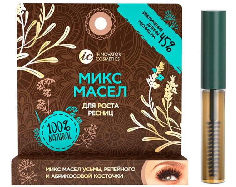 Russian product for stimulating eyelash growth.In a transparent tube with a brush, 4 ml of the product contains burdock, taramira, apricot oil and usma oil. The mascara-like brush helps wrap each hair with the product. The combination of components restores and strengthens hair follicles. Burdock extract contains the natural polysaccharide inulin. The substance is responsible for strengthening the bulb and normalizes the metabolism in skin cells. Works against brittle eyelashes. Peach helps repair damage, promotes rapid growth and deep nourishment. It is recommended to use it for dry eyelashes. Usma mustard plant (arugula) activates growth, gives volume, prevents loss, nourishes eyelashes, saturates them with vitality, which makes the hairs darker and the color more saturated. Along with eyelashes, the component helps to smooth out small mimic wrinkles around the eyes. The composition of the oil contains vitamins of group B, E, A, PP, minerals and amino acids.