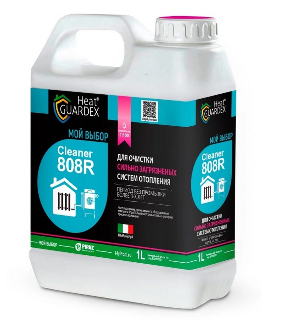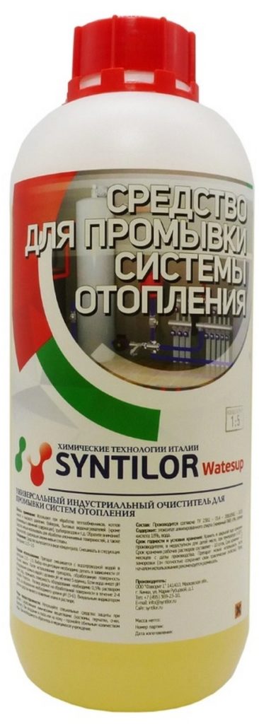 Professional cleaner. It can be used both for cleaning the circuit itself and for internal cleaning of boilers of autonomous systems. Works great with all types of dirt: from corrosion to limestone deposits. Does not adversely affect the structure of polymer seals. Refers to moderate hazard class 3.