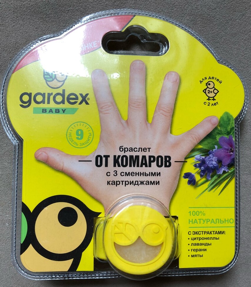 A very convenient device was proposed by Chinese manufacturers.Its principle of action is a non-contact repellent. The natural composition, including essential oils of plant components, allows it to be used to protect children from the age of two. The set with the bracelet includes 3 removable cartridges, each of which works for 3 weeks. To prevent the baby from swallowing small parts, a bitter food additive is applied to it.
