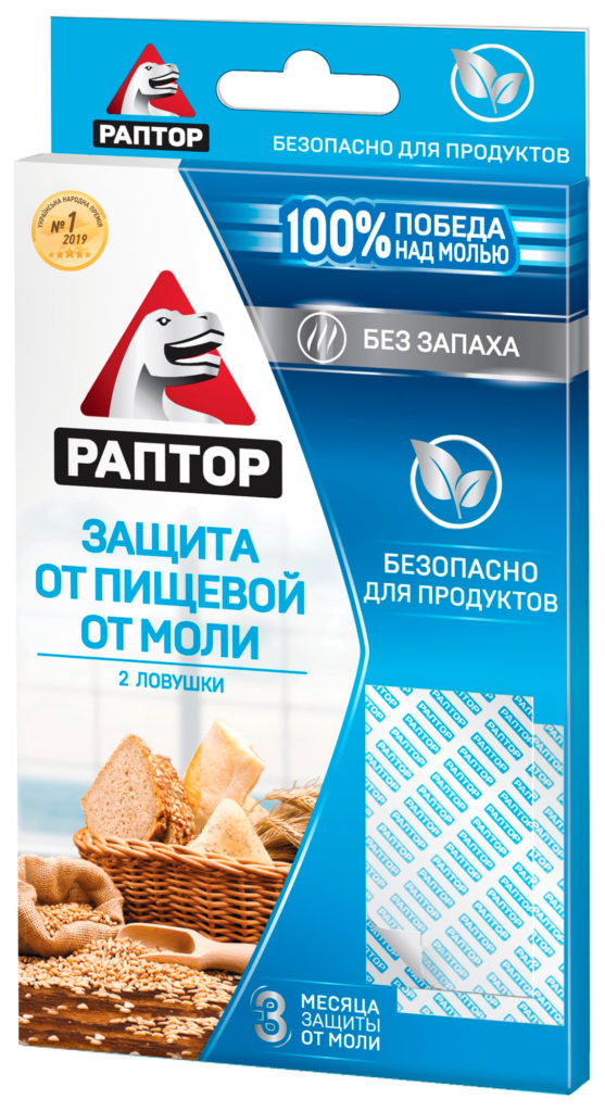 A safe glue trap of this brand reliably protects food products from moths. It does not contain abrasive reagents and prevents the appearance of pests. The validity period of such funds is 3 months.