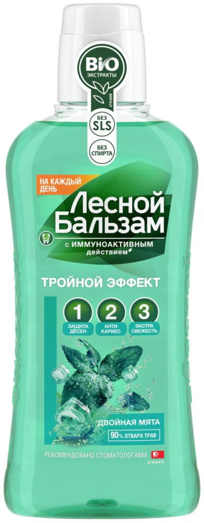 The product protects against bacteria and plaque. Removes plaque residues at the gum line, from the surface of the tongue and teeth. The rinse aid has a pronounced mint taste, does not contain aggressive components and alcohol. Blocks the pathogenicity of active microbes. Gives a long-lasting feeling of freshness.