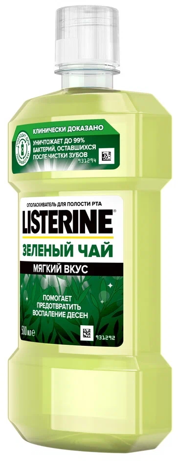 Rinse Listerine "Green tea with mint flavor", bactericidal and bacteriostatic effect in it appears due to essential oils. The drug fights against the formation of plaque, which is the main cause of gum disease. The rinse contains natural green tea extract. This contributes to a pronounced bactericidal effect.