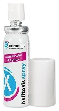 Miradent Halitosis Spray acts on sulfur compounds produced by microorganisms. The composition contains useful substances.