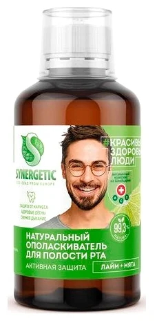 SYNERGETIC is made up of natural ingredients. The rinse provides a feeling of cleanliness and takes care of the health of teeth and gums. The aroma of lime and mint creates a feeling of coolness. The preparation contains an extract of chamomile, calendula, yarrow, sage and aloe vera, as well as vitamins A, C, E. The complex of essential oils of bergamot and geranium gives freshness. The drug does not contain fluorine, dyes, chlorhexidine, alcohol.