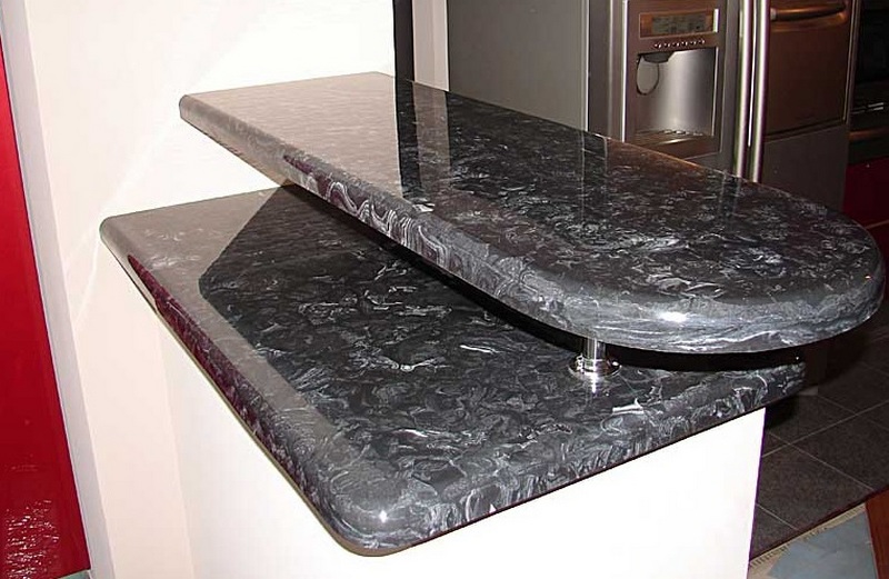 This type of countertops is more often used in the restaurant business, because it is very convenient to equip bar counters with them. However, they will require the use of the most durable artificial stone, as their intensive exploitation is expected.