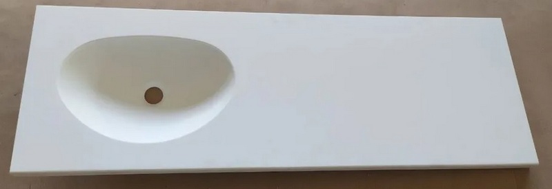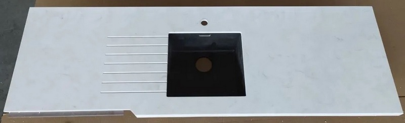 This sample is made of artificial acrylic stone in sizes and rectangular shapes suitable for the average Russian apartment. An induction cooker can also be integrated into it, and not just a sink. It can be provided with roundings and bevels under the walls, or you can independently build up the sides on it. Samples from this collection are durable, look good in the interior. They do not absorb moisture, dirt, grease and odors. Do not deform. Easy to care for and durable. The recommended cost for retail chains is 23,700 rubles.