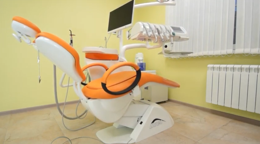 Stationary installation with an electromechanical chair that accepts up to nine positions, equipped with two armrests, an articulating headrest (adult and child included). Seam upholstery somewhat softens the rigidity of the plastic. You can choose from leather, leatherette in six colors. The medical module is equipped with four instruments, a negatoscope for viewing x-rays, and a metal tray. The hydroblock with a ceramic rotary spittoon is powered by an autonomous water supply, but there is no hose disinfection system. The swivel LED luminaire does not have dimming modes. Type of supply of tools to choose from.