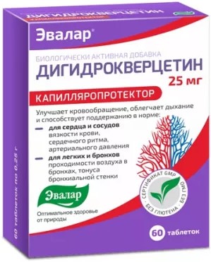 Dietary supplement based on plant extracts, approved for use from 14 years of age. The course is designed for 2-3 months, a repeat is possible after a 2-3 month break. It is an additional source of flavonoids (including rutin) containing hyperoside. Shelf life: 2 years. Average price: 344 rubles.