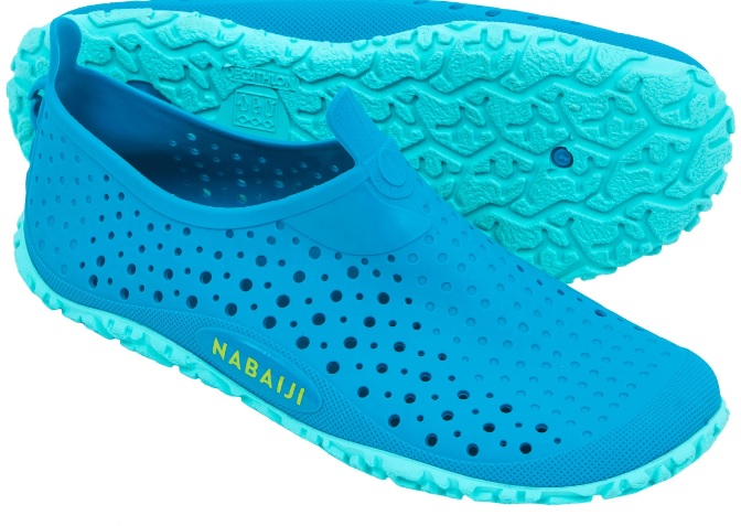 Children's swimming shoes for the pool are different from ordinary flip-flops. They are tightly stretched over the heel and fixed on the leg. This eliminates the risk of catching on something with the sole, the shoes will not fly off the foot by accident. Comfortable donning is ensured by long tongues on the heel and vamp. The upper part is perforated, there are holes for drainage on the sole. This promotes rapid drying.