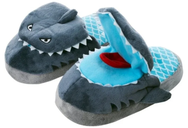 Made in the form of a soft toy, soft and surprisingly warm slippers are very comfortable, funny design makes you smile.When walking, the shark seems to come to life, opens its mouth and shows its teeth. The product does not require batteries, working from a pump sewn into the heel. Slippers are easy to wash and do not require special care.