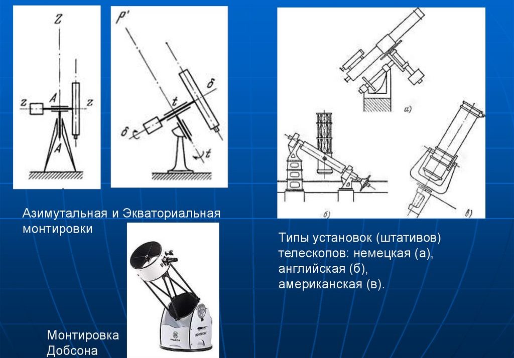 There are only 2 types of mount (not counting the various variations) - these are equatorial and azimuthal. Each has its own merits and demerits. For example, the Azimuth mount is an easy-to-use and stable mounting system with intuitive controls that even a child can handle. Telescopes with an azimuthal mount are more compact, so you can easily take them with you to the country.