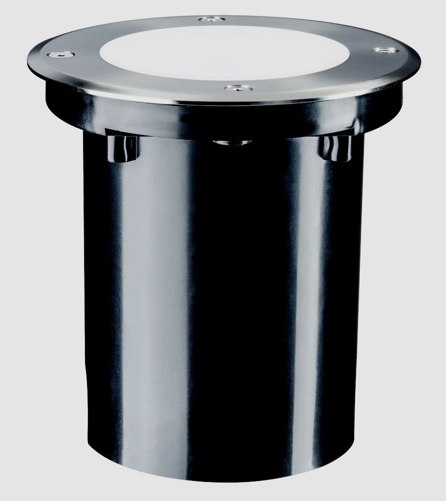 A quality product from a renowned German manufacturer. The shape of the steel case is cylindrical. The top layer is a powder (black) coating, which prevents the development of corrosion. The lamp is placed under the glass. The glow is directed upwards. To access the LED, you will need to unscrew the four bolts located at the top of the cover. The model is made in high-tech style. It will fit perfectly both in the garden of the cottage and in the office space.The power of the light bulb is 6 W, and the consumption is 24 V. The housing has an IP-67 protection class.