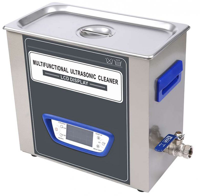 Professional parts cleaner. Often used in places where watches or digital equipment are being repaired. It can be used to clean complex contaminants, including oils.During operation, the device does not cause damage to the part, due to the high frequency of the generator. A feature of the device is the presence of toggle switches, with the help of which the user independently regulates the power of the device. The bowl size is 6 liters, which is ideal for cleaning large parts. For ease of use, the bowl has a special valve for draining the working fluid.