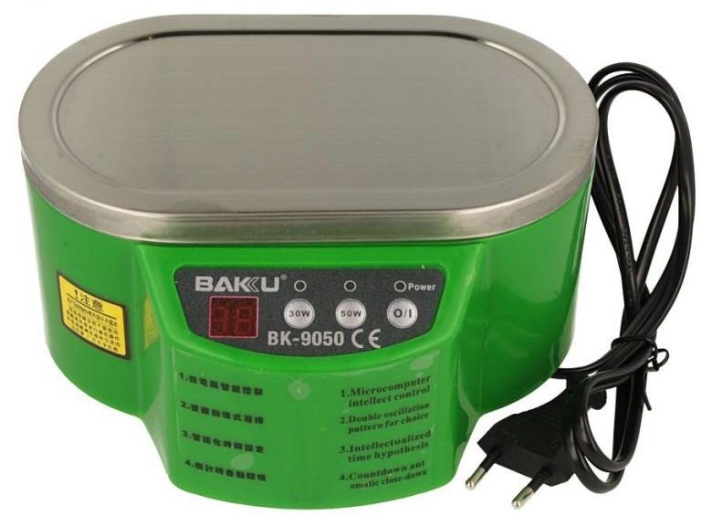 The device is made of durable plastic and metal. The bowl for immersion is made of high-quality stainless steel, therefore it does not react to solutions and can last for a long period. The device is used for small parts, coins and jewelry. A feature of the device is the ability to adjust the power. The device is controlled using the control keypad. Power is adjusted individually for each case, depending on the type of material and the degree of contamination.