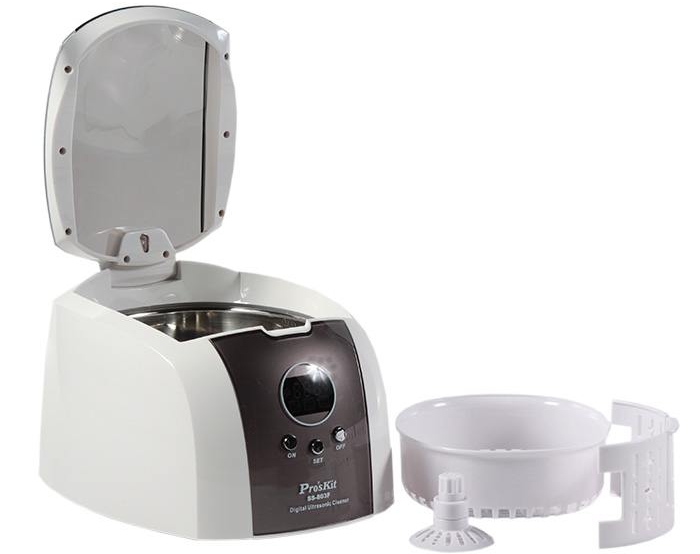 The product is intended for thorough cleaning of parts from oil and other types of contaminants. Very often, such devices are used in medical institutions and nail salons. The parts container has a size of 0.700 l. Can be used to clean jewelry and watch parts. The power of the device is 50 watts. The user can set up 5 cleaning modes, depending on the type of material from which the item is made. The bathroom comes with a special holder for small parts.