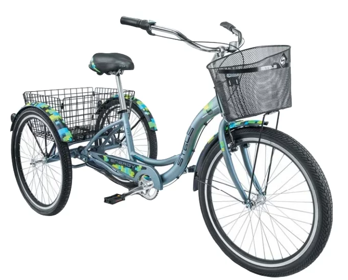Three-wheeled model with a revolving handle, a luggage compartment and a basket in front.It is designed for city driving. The design is made of aluminum alloy and has a metal bead cord. Ideal for transporting small loads. And the additional wheel gives the bike good stability during movement.