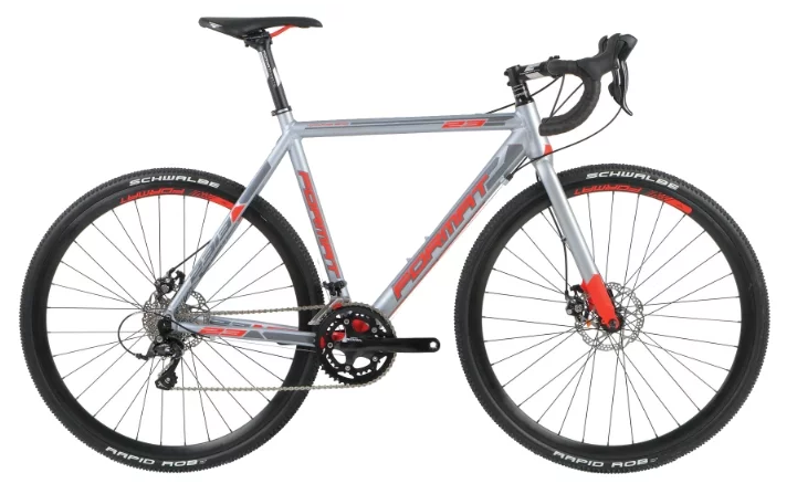 Cyclocross bike, saddle material - chrome-molybdenum alloy, handlebar - road type, rigid fork. The aluminum frame is equipped with a chain drive. There is a 2nd rim.