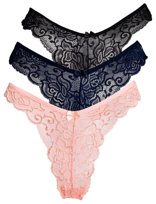 The set contains graceful lace bikinis with a large cutout for the legs as in the photo. Which are aimed at energetic ladies, as they do not interfere with movements. Sold by 3 pieces