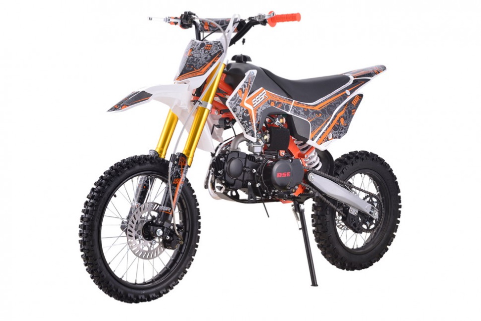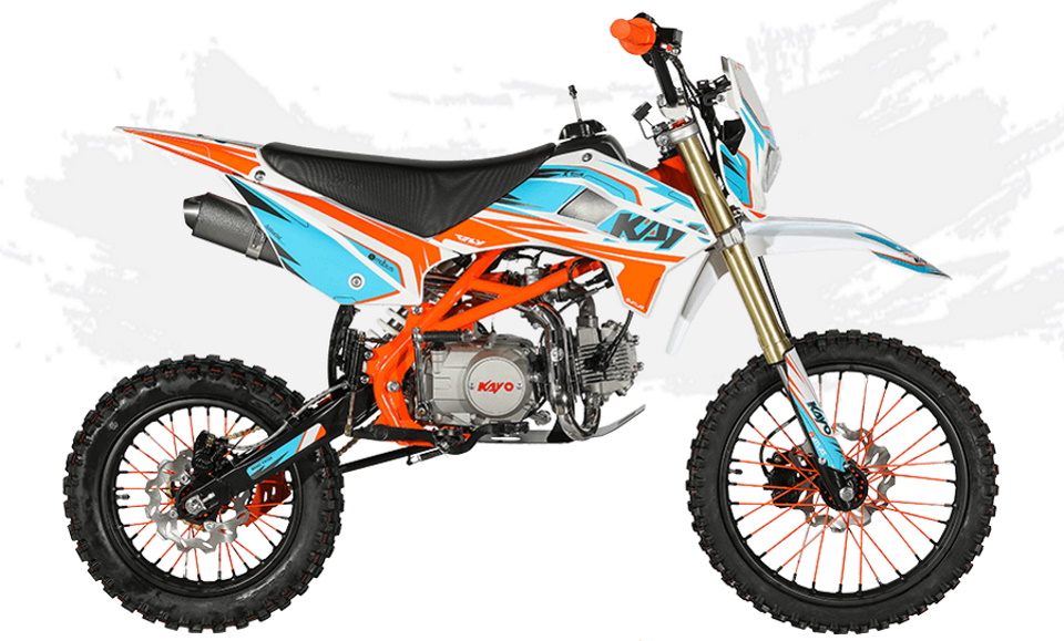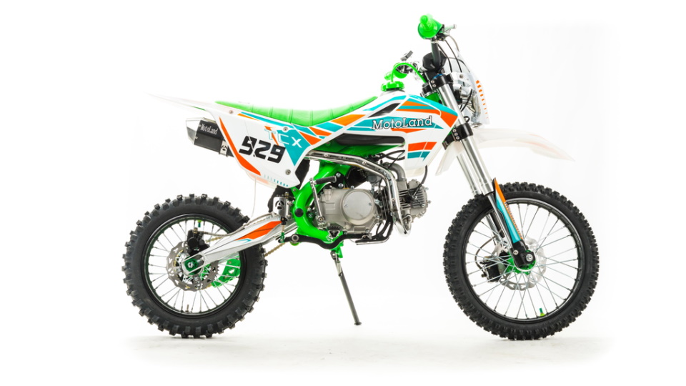 A popular model of the Chinese pit bike with an updated design for practicing the initial skills of driving cross-country equipment and riding on rough terrain. The basis of the device is a reliable steel frame of the "birdcage" type, to which a 125 cc four-stroke YX153FMI engine is attached, developing 11 hp. At the front, suspension is provided by a traditional telescopic fork without adjustments with a travel of 73.5 cm, at the rear a 36 cm mono-shock is without adjustments.