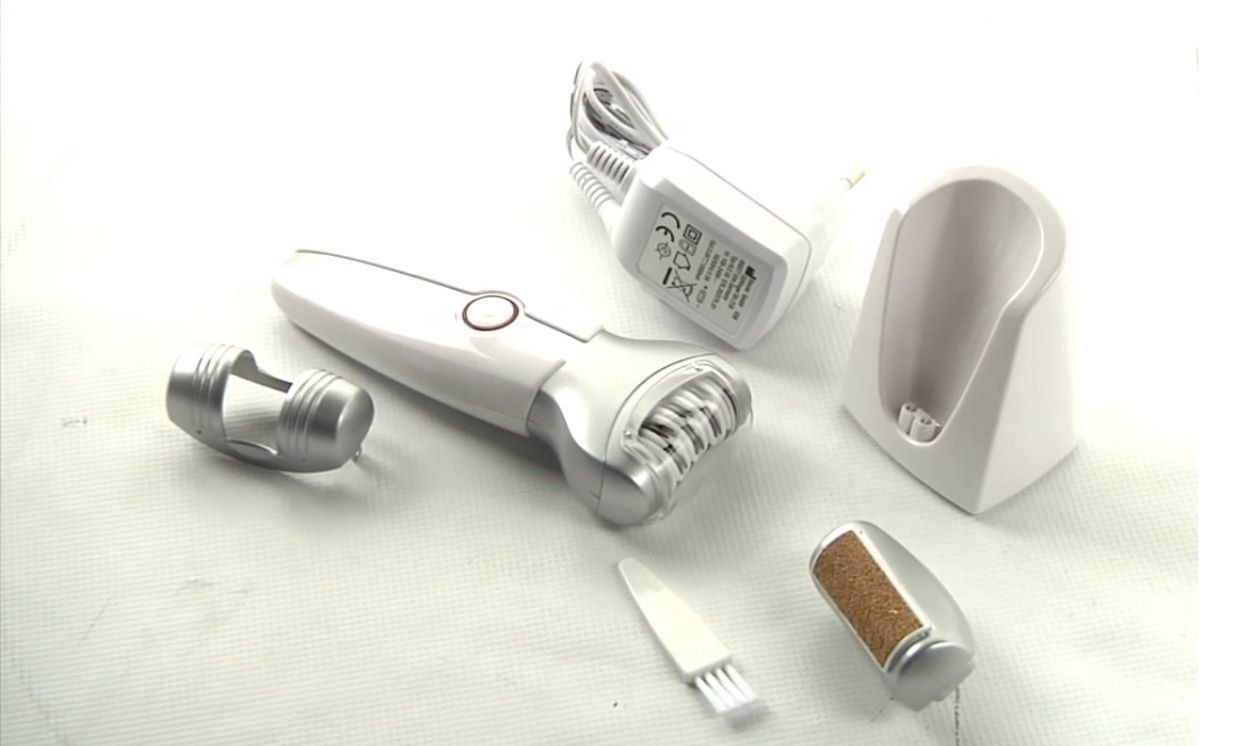 In addition to the power supply and charging unit, the epilator comes with a special cover to protect the head, which makes it easier to carry the device on trips. The additional attachment for delicate areas will relieve pain in the bikini area.