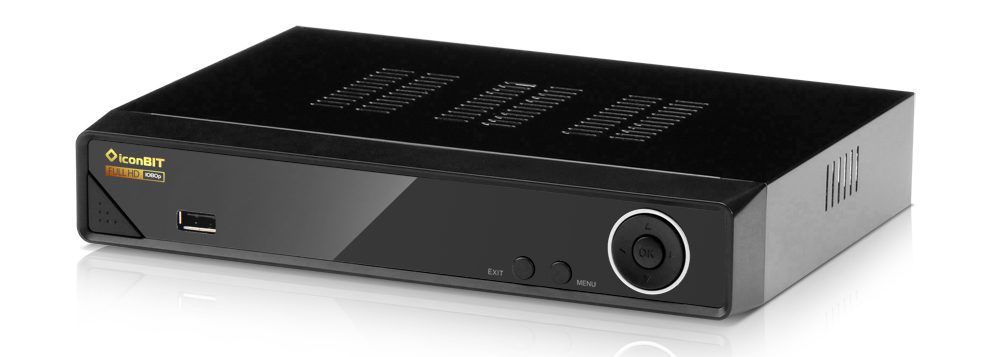 The iconBIT MovieHD T2 product is an iconBIT set-top box, the model is large compared to the old design. The device has a convenient size, the design is stylish, you can place it on the TV without it, only so that the socket is close, since the cable length is less than a meter. The front is a darkened cheap panel, where there are no standard buttons, there is an indicator, an IR control device and a connector, and the rest of the surfaces are made of metal, there are holes for cooling the product. The rear panel model has the required interfaces, composite and component outputs, as well as coaxial SPDIF, connectors and the device's antenna input.