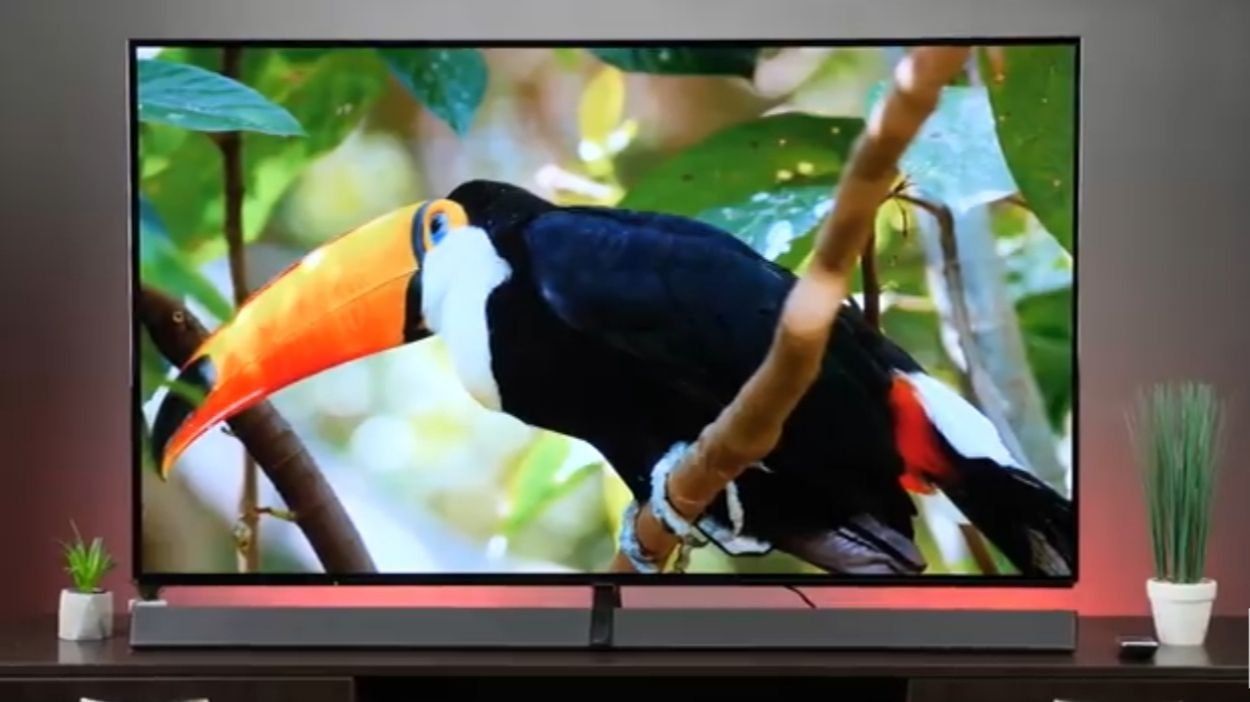 The model of this TV is not the largest in terms of size, but 65 inches is enough for a classic apartment in our country, in addition, the manufacturers promise to watch movies in the same quality and detail as they were intended by the creators in Hollywood. The TV has a powerful audio system at the base, providing an even and clear sound.