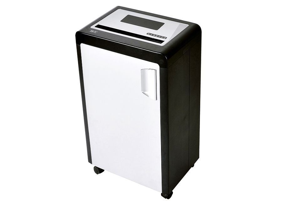 This model will cost 10,500 rubles. The device also weighs 20 kilograms, like the previous model. The power of the device is amazing. Can cut discs, credit cards and sheets of paper. Useful for a large office. The basket volume of 30.3 liters will please any user. The machine will detail almost any material that contains documents. Even thick envelopes "devours" without problems. Can cut 2 envelopes at the same time.