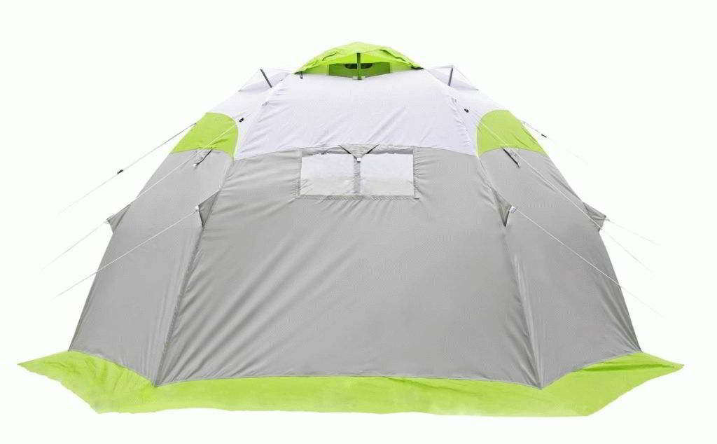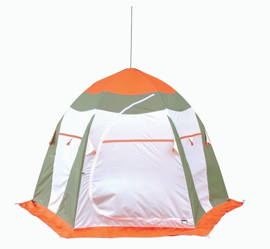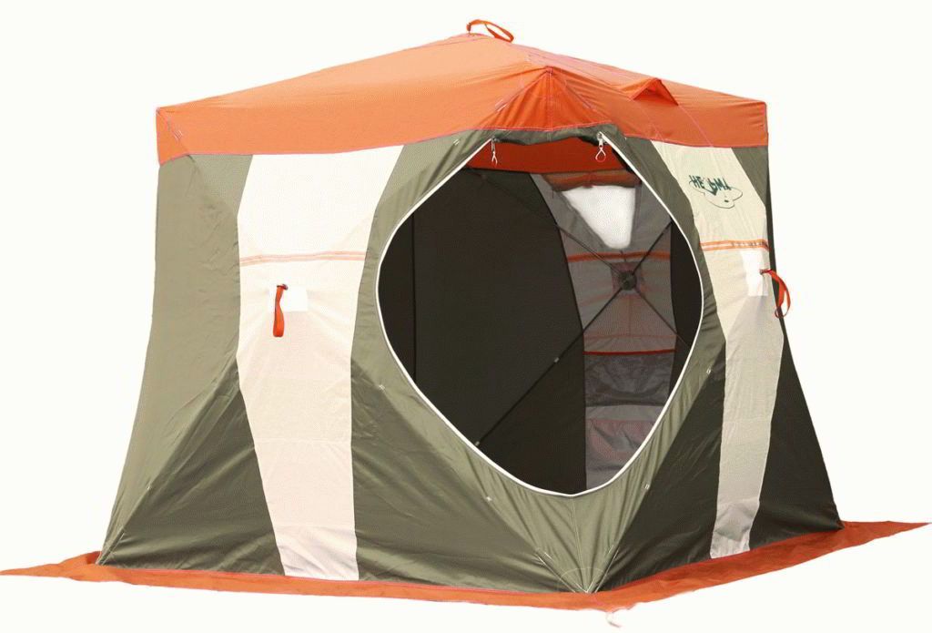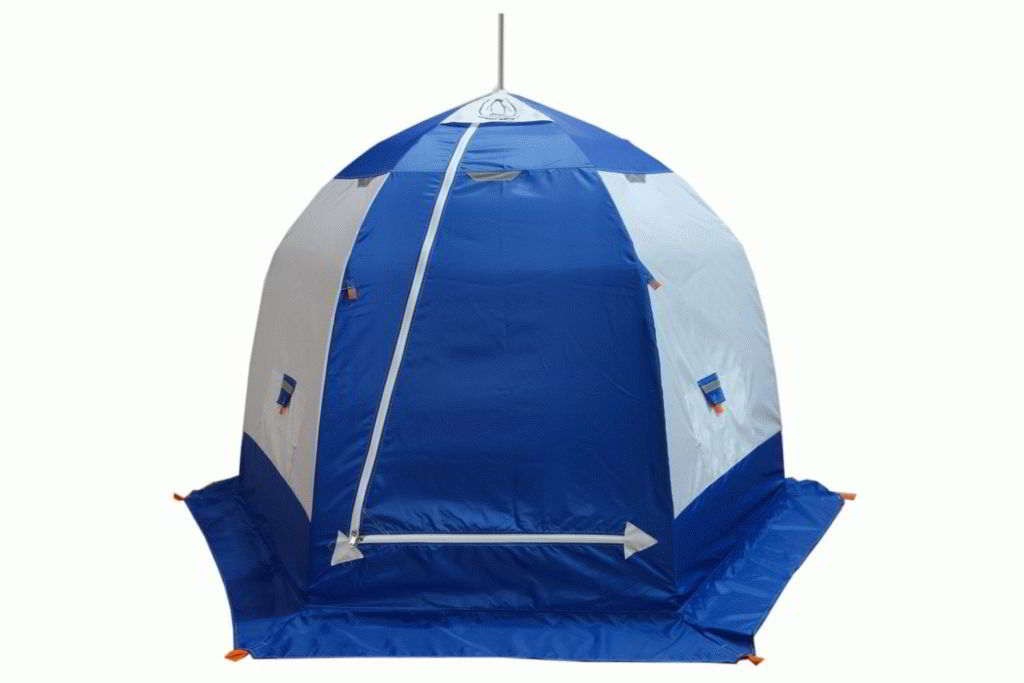 This tent has the shape of a hemisphere and reliably protects fishing enthusiasts from frost and bad weather. The model is made of two-layer material with special impregnation, which is protected from fire. The shelter has good moisture-resistant qualities and adequately withstands gusts of wind.