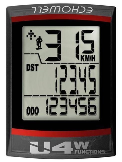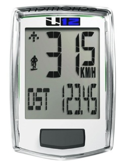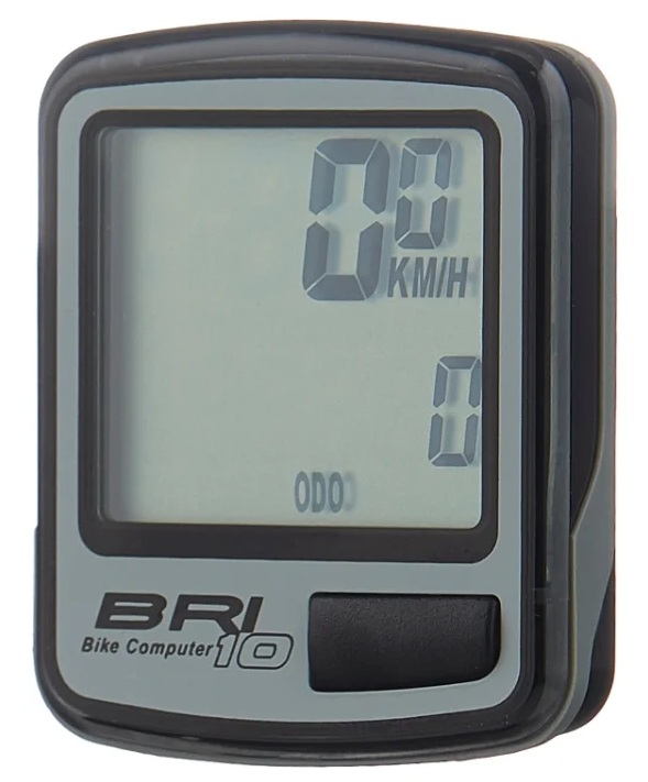 The main advantage of the device is the absence of wires for fastening. The sensor in a plastic case with a small monitor is mounted on a fork, quickly removed, equipped with 13 functions, of which one can distinguish automatic start / stop and scan, calorie counter, stopwatch and clock. Battery type LR44. The device is compatible with all kinds of 2-wheel bicycles.
