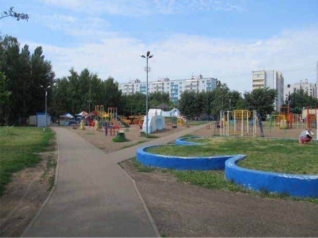 This place is often visited by families with children living in the Volga and Vakhitovsky districts. The site is located on the territory of a fairly large park.It has a variety of slides, sandboxes, swings, balance beams and other traditional climbing frames for children. All of them are in excellent condition. A few years ago, a football field was equipped next to the site, where you can kick the ball for free. Separately, there is a workout area.