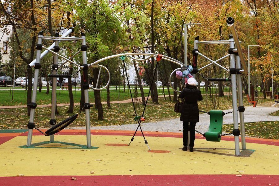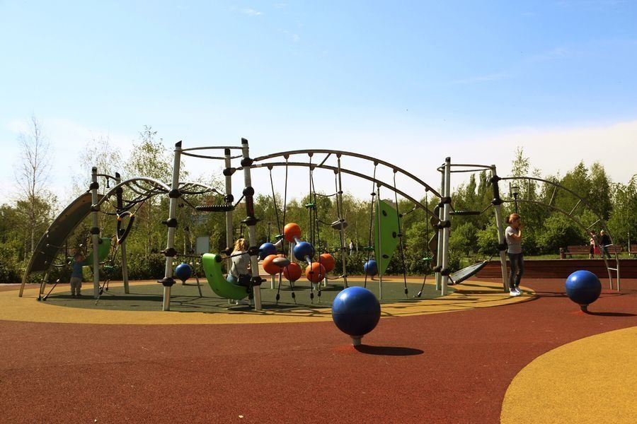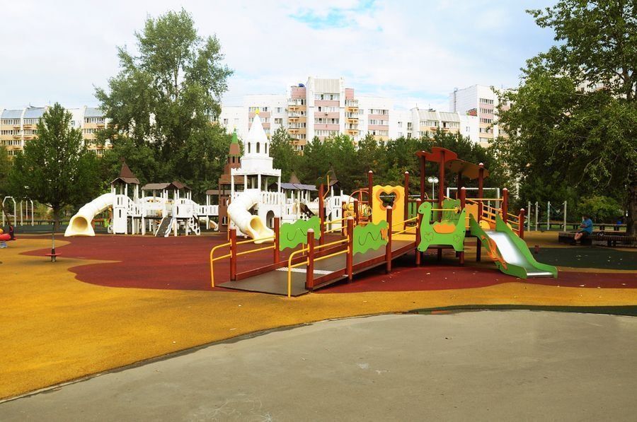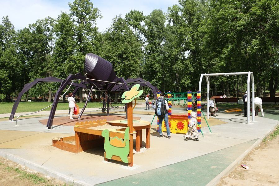 Now there are not so many children on this site. If you wish, you can ride in a cart or rent a car. Young mothers with strollers often walk here, and young people ride bicycles and roller skates along the paths. You don't have to bring your own sports equipment. There is a rental service near the site. The actual playground is located at the end of the park, not far from a small lake. Next door is a playground with sports equipment. On the playground, children can ride on a slide or on a swing. Adults and older children will be interested in sports facilities. There are attractions nearby.For a small fee, children can jump on a trampoline, ride in boats or a car, climb in a maze or ride in a water balloon. On the territory of the site, the ground is covered with a special coating. Therefore, there is no need to worry about the safety of children. There are benches next to the playground.