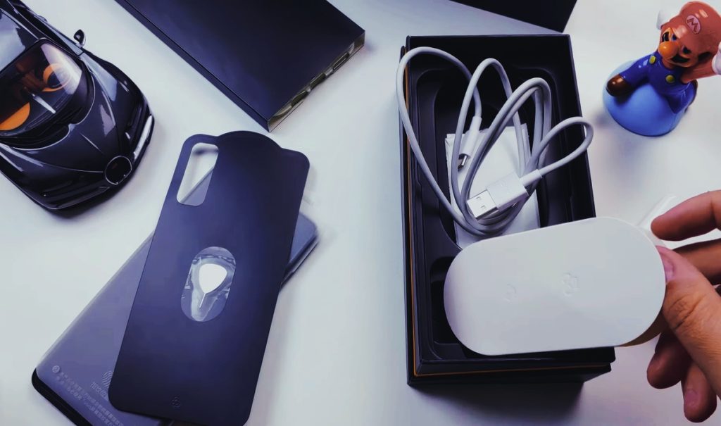 Packed smartphone in a stylish box. Even when closed, everything looks unimaginably expensive (maybe it's the magic of the black color), although the cost of the Neo 855 does not exceed $500. Inside, in addition to the phone: cord, charger, certificates and coupons. The model is announced in three colors: black with a red neon stripe across the body, newfangled aurora or northern lights, and purple. All designs, without exception, are good, but aurora is much easier to find on the wave of popularity than the same purple, and black is not particularly popular among users due to the rapid fouling of prints.