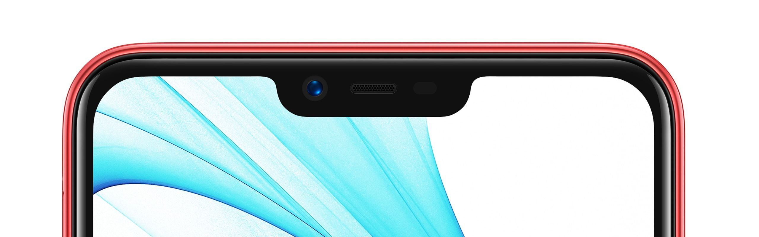 From the front, there is a 6.2-inch screen with a monobrow and thin bezels around the edges. The display occupies almost 89% of the front panel surface. At the top is the front camera with speaker.