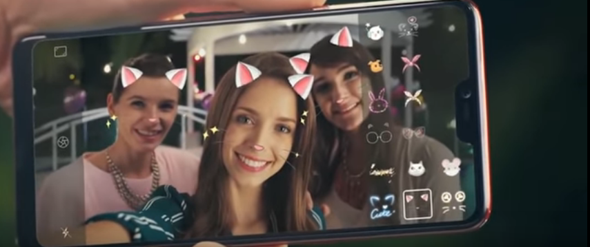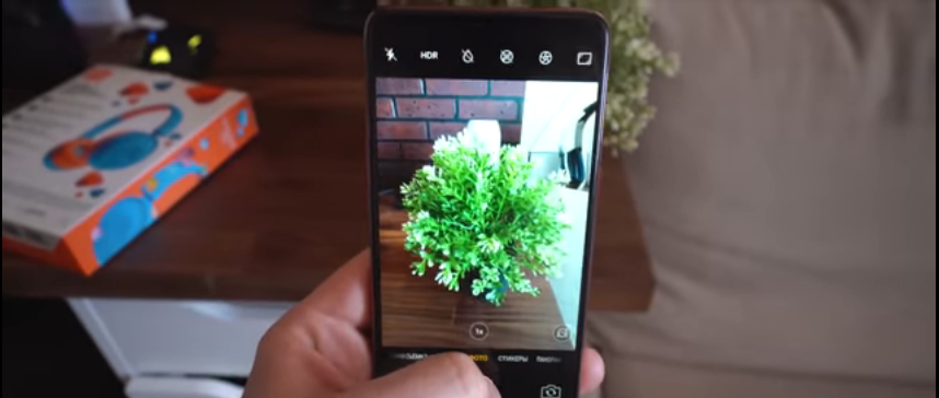 You can take a panoramic selfie. In the camera, when shooting in real time, it is possible to add a variety of stickers (cat ears, antennae, flowers, etc.). There is the possibility of shooting in HDR mode.