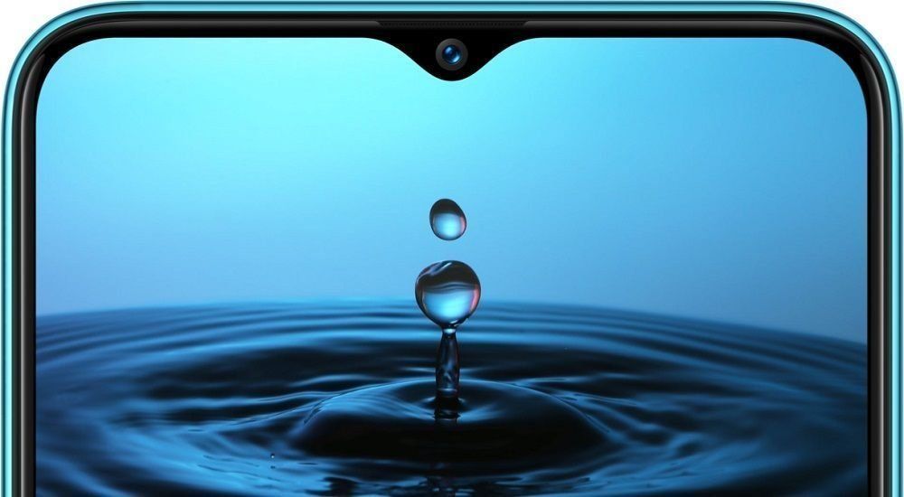The smartphone has an interesting front panel design. The cutout in the screen for the front camera is very small, and the smartphone looks much better than models with huge unibrows. This “droplet” was able to accommodate not only the camera, but also the proximity sensor, which is almost invisible.