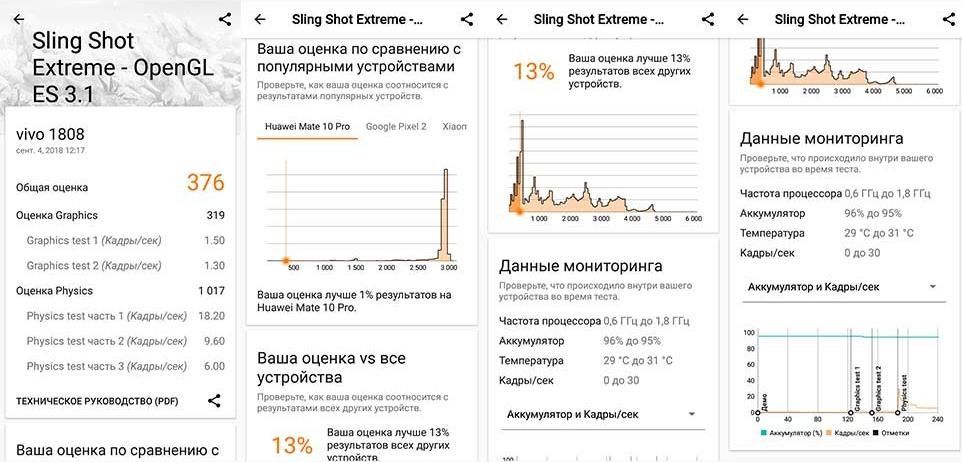 Using the GameBench program, you can measure the degree of load on your smartphone during the game. This app collects all load statistics of any big game running offline. Perhaps Vivo saves battery life in high load mode in this way, because during charging the application load level on the phone is not displayed.