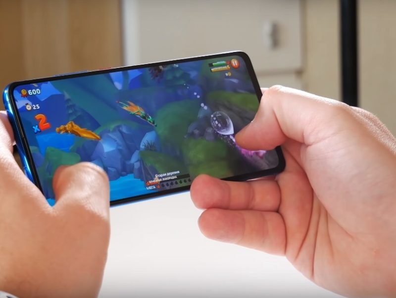 The phone is pleasant to hold in hand. It is somewhat thicker than its predecessors, measuring 8.8 mm. The back of the case is equipped with a triple wide-angle camera. The cameras are located in the center of the lid. The design is designed for the amateur, especially if the user likes the angled cameras. The display is protected from scratches by Corning Gorilla Glass 5. The display is full-screen, without cutouts for the camera, almost without a frame (the width of the frames top / side / bottom is 2.1 / 1.85 / 3.8 mm, respectively). The power and volume buttons are located on the right side, the card slot is on the left. The power button is marked in red.