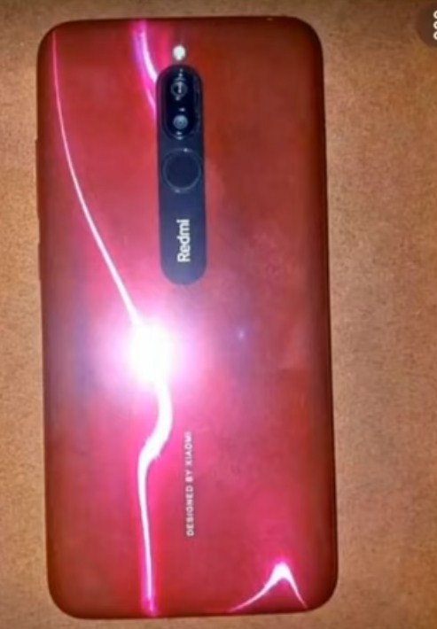 The back panel is made of glossy plastic with a choice of gradient shades of black, red or blue. On the panel, in the middle of the surface, there is a dual main camera module, above it is an LED flash, below it is a fingerprint sensor and below it is the Redmi inscription. Even lower is the inscription Designed by xiaomi.