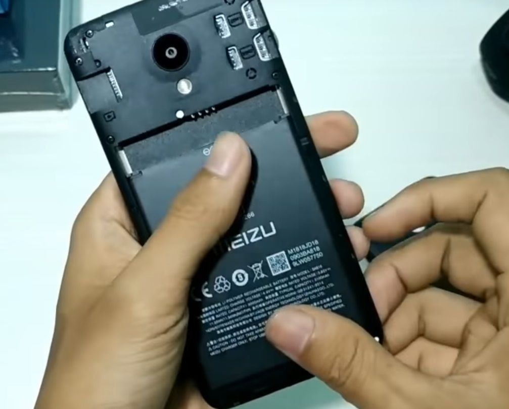 The features don't end there. For popular models, the Meizu brand has made a removable 3,000 mAh battery, respectively, the cover is removed. The panel is made of polycarbonate materials and has a corrugated texture interrupted in the company logo area.